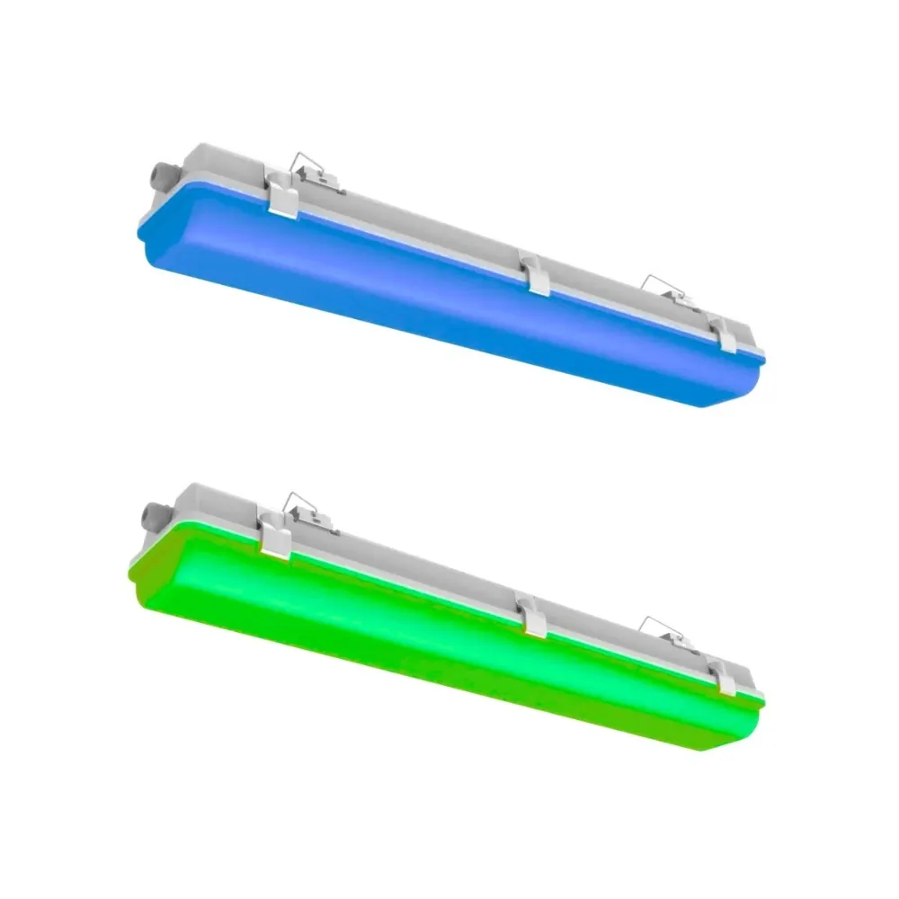 The SAL SL9726-20BU-GN is a 2FT LED batten with selectable blue (450–470nm) or green (510–530nm) output, designed for industrial and commercial use where colour-coded lighting improves visibility or safety. With dual wattage control (10W or 20W), this batten adapts to the lighting needs of different zones or tasks.