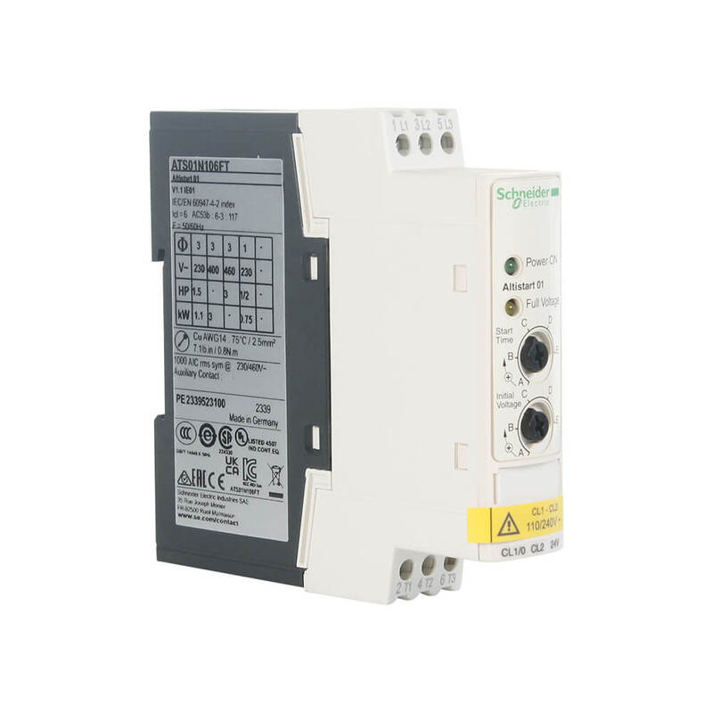 The Schneider Electric ATS01N106FT Altistart Soft Starter is a compact and efficient solution designed for electricians seeking to improve the performance and longevity of various machinery. Ideal for single or 3-phase asynchronous motors with a rating up to 6A, this soft starter is versatile for a wide array of applications.