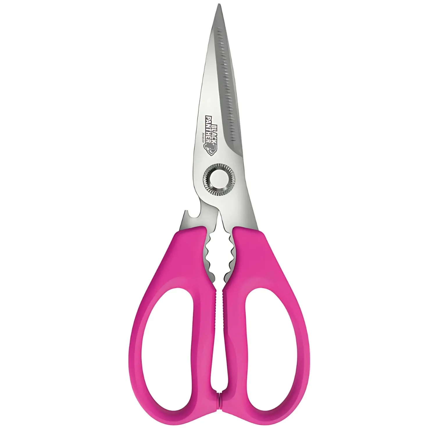 The Sterling 29-802P is a tough, 205mm pair of pull-apart kitchen shears designed for professional kitchens, trade sites, and general use. Made from Japanese 420J2 stainless steel, the blades are precision-ground, serrated, and built to last through daily cutting, slicing, and prep. A built-in bottle and lid opener adds extra utility on the job or at home.