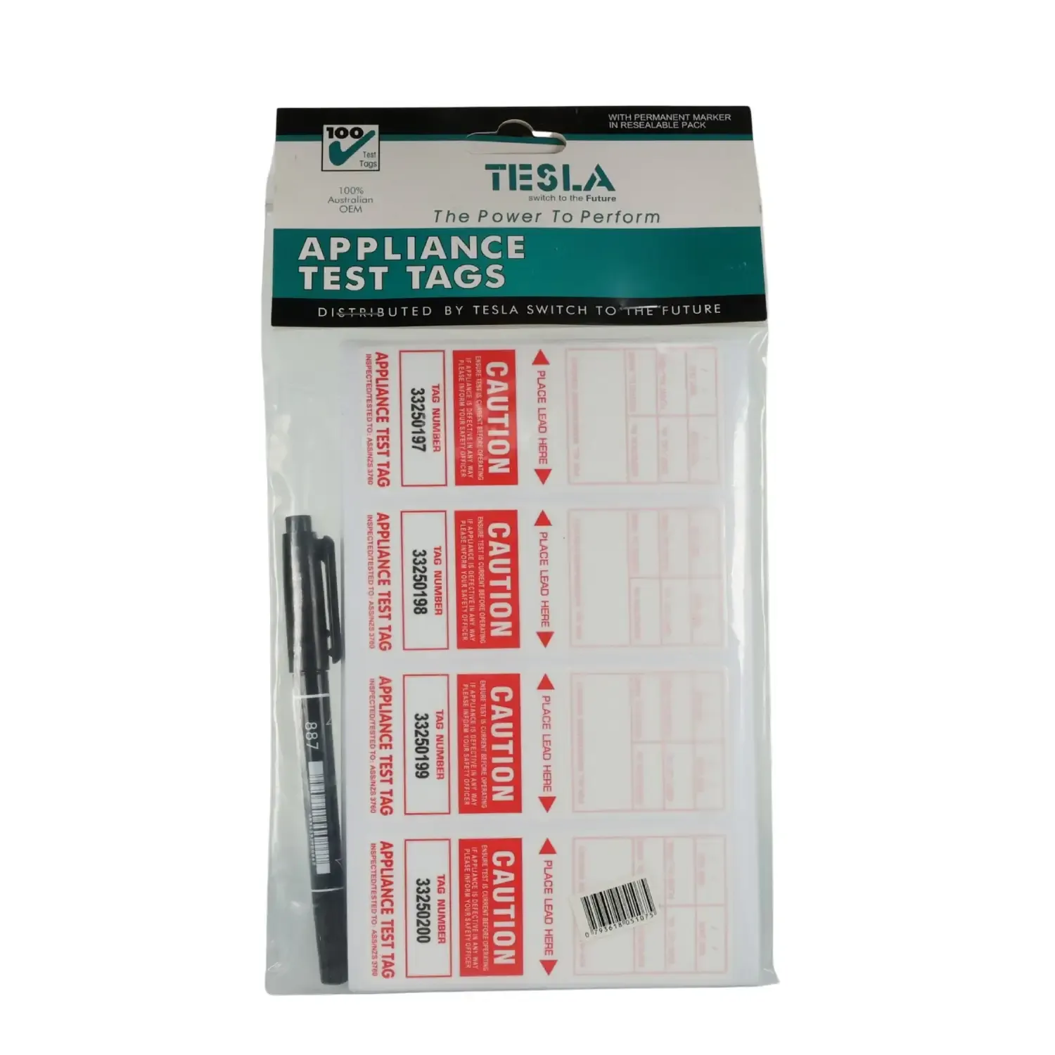 The Tesla TTAGRED are self-laminating appliance test tags used to indicate inspection dates in compliance with Australian test and tag regulations. Supplied in a 100 pack with pen, these tags are smudge-resistant, durable, and easy to apply on-site. The red colour is part of the national tagging rotation, helping to clearly identify test periods and maintain compliance.