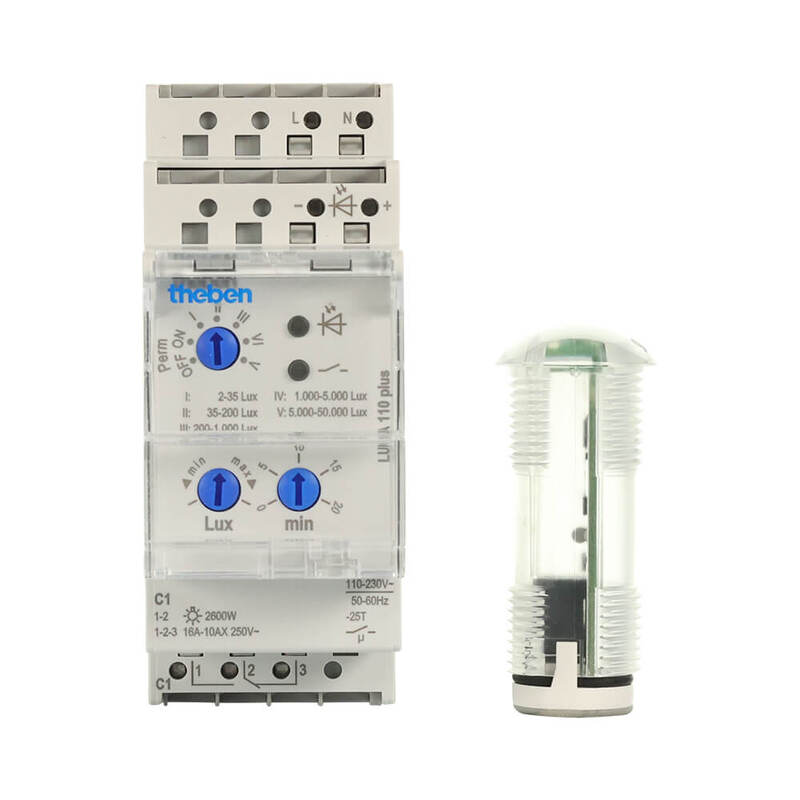 The Theben LUNA110PLUSEL Twilight Switch is an analogue time and light control solution for efficient lighting management. This device includes an external flush-mounted light sensor for accurate ambient light detection, making it ideal for electricians.
