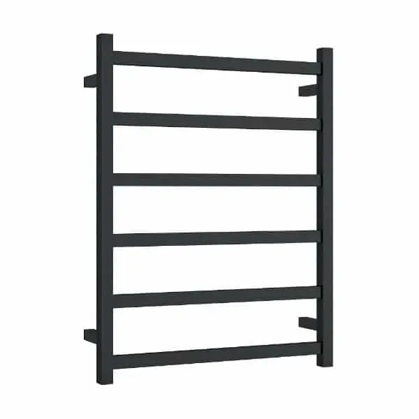 The Thermogroup BS48MB Thermorail is a stylish 6-bar square heated towel rail designed to dry towels and add a modern feature to your bathroom. The matt black finish matches black tapware and fittings, creating a clean, contemporary look. It measures 600mm wide by 800mm high and can hold and dry two towels with ease.