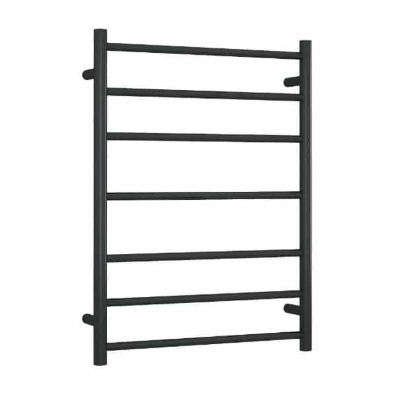 The Thermogroup SR44MB Thermorail Round Ladder Heated Towel Rail, a stylish and practical addition to modern bathrooms. This 600x800, 7-bar ladder rail, finished in matte black, is designed to complement your contemporary bathroom aesthetics while providing the luxury of warm, dry towels. Its popular size accommodates two towels comfortably, fitting seamlessly into a variety of bathroom spaces.