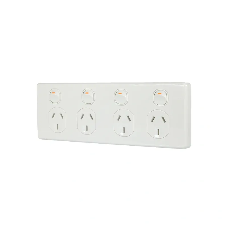 The Trader Puma PUPP4G is a 4-gang horizontal power point designed for reliable and convenient electrical installations. It features single-pole switching and a pre-wired 240mm cable loop, making it quick and easy to install on a single power circuit. The mounting centers measure 183mm, and a custom 2-gang wall bracket is included for a secure fit.