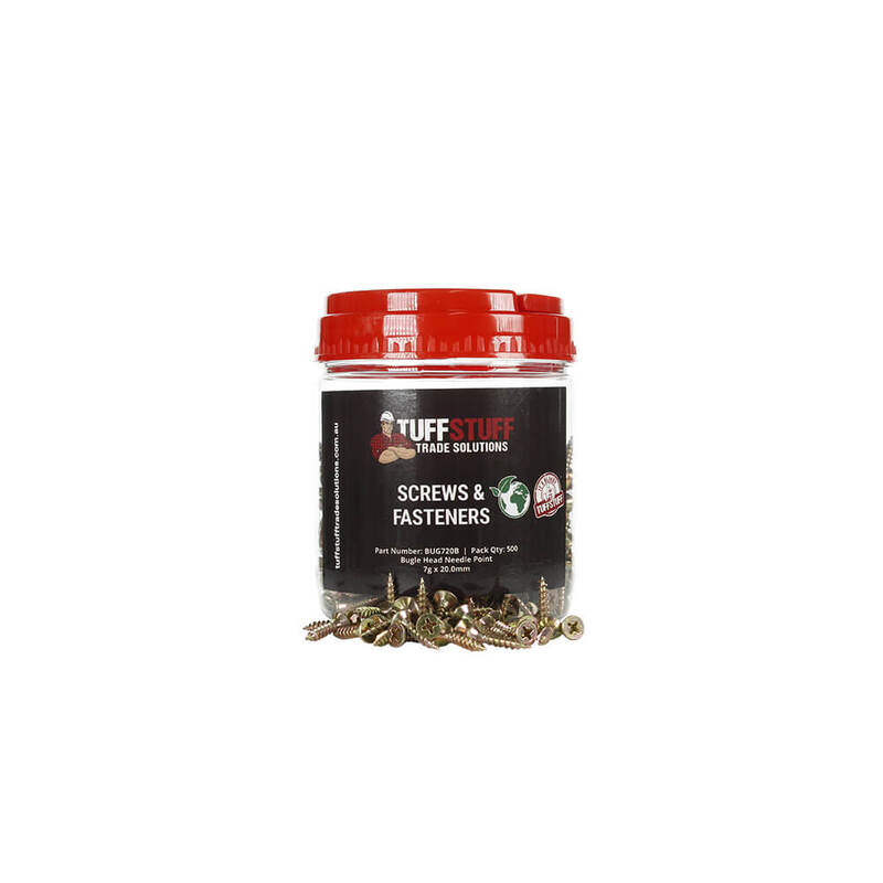 Upgrade your projects with the TuffStuff BUG720B Bugle Head Needle Point Screws. Designed to deliver exceptional performance and reliability, these screws are your perfect companion for various applications. Whether you're working on woodworking projects, installations, or repairs, the BUG720B screws are the ultimate solution for your needs.