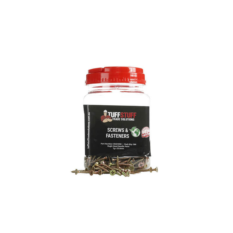 Upgrade your projects with the TuffStuff BUG725B Bugle Head Needle Point Screws. Designed to deliver exceptional performance and reliability, these screws are your perfect companion for various applications. Whether you're working on woodworking projects, installations, or repairs, the BUG725B screws are the ultimate solution for your needs.