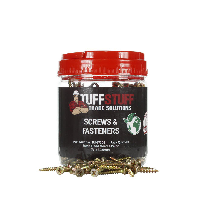 Upgrade your projects with the TuffStuff BUG730B Bugle Head Needle Point Screws. Designed to deliver exceptional performance and reliability, these screws are your perfect companion for various applications. Whether you're working on woodworking projects, installations, or repairs, the BUG730B screws are the ultimate solution for your needs.