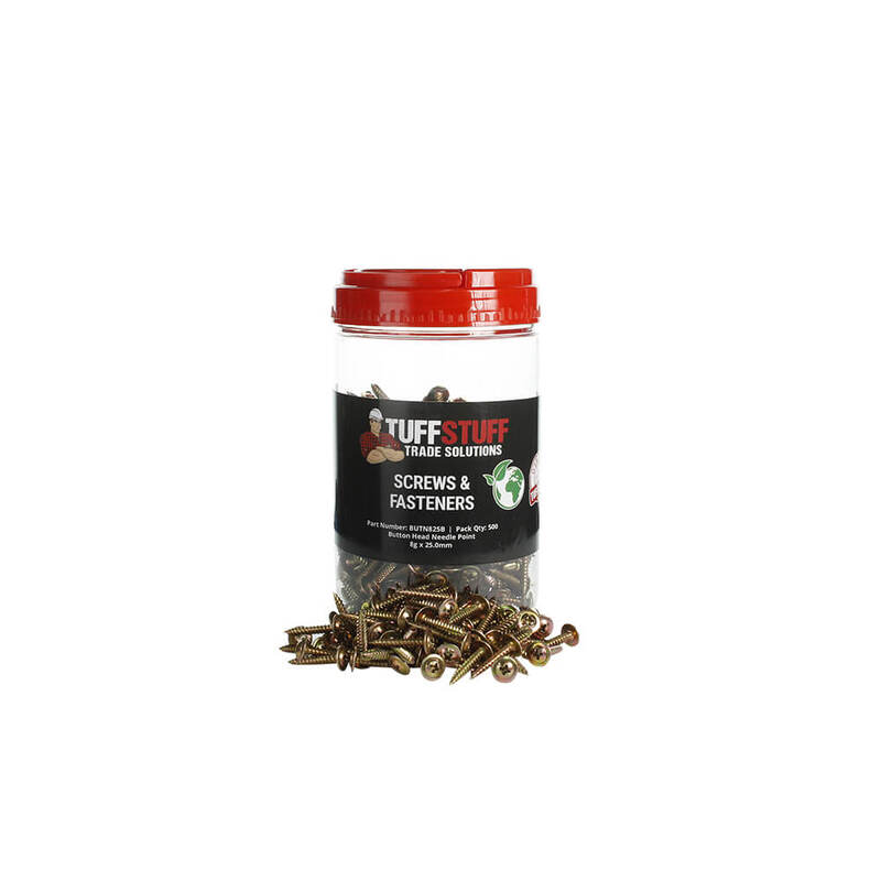 Generous Quantity: Each bucket of TuffStuff BUTN825B screws contains a generous supply of 500 pieces, ensuring you have an ample quantity on hand for multiple projects.