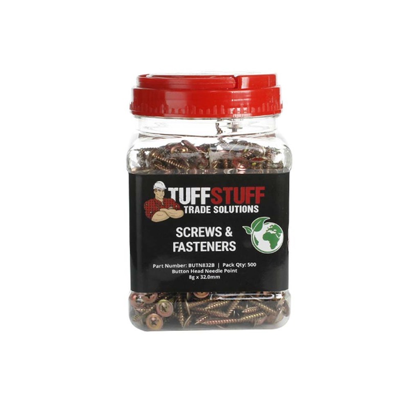 Effortless Fixing: Tired of struggling with standard screws? TuffStuff BUTN832B screws feature a needle-point tip that effortlessly pierces through various materials, making your fixing jobs quick and frustration-free.
