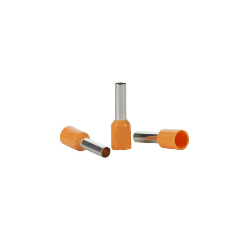 The TuffStuff CE4.00 Boot Lace Ferrules are 4.0mm insulated cord-end terminals built for secure and tidy termination of medium-sized stranded conductors. With 99.9% oxygen-free tinned copper barrels and virgin nylon insulation, they deliver high conductivity and consistent electrical protection. The orange colour coding aligns with Australian standards for easy circuit identification.