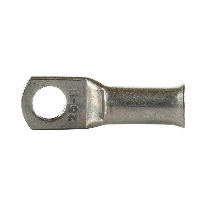 The TuffStuff CL258F Flared Entry Copper Lug is designed for secure, compliant termination of 25mm² conductors onto an 8.0mm stud. Made from tinned copper and manufactured to Australian Standards, it offers excellent conductivity and resistance to corrosion. The bell mouth flared entry allows easier cable insertion and helps maintain strand integrity during crimping.