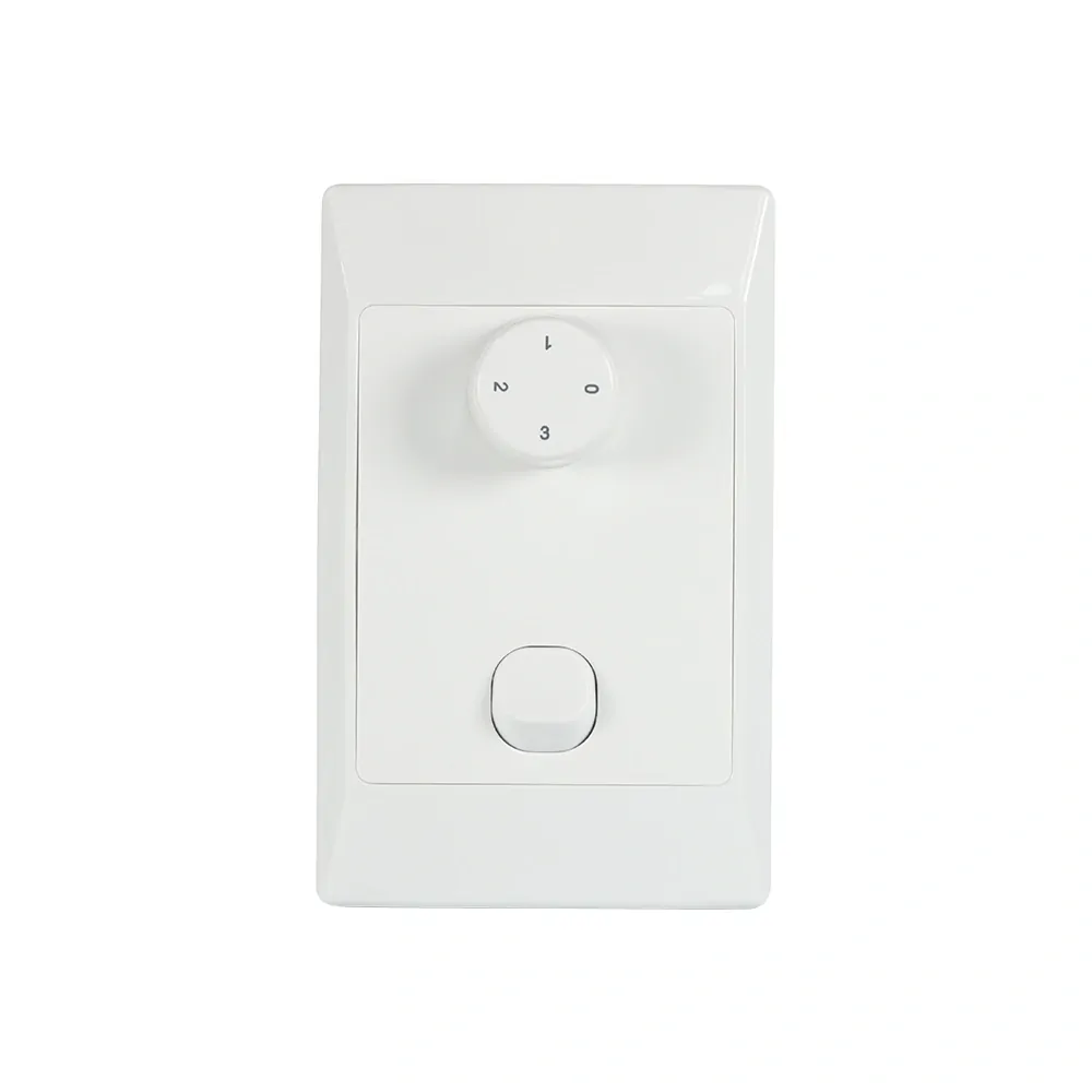 The Ventair FleXmech DCFAN3SPWC is a reliable and easy-to-use wall control designed specifically for DC fans without lights. It features a simple rotary design for precise fan speed management and eliminates the need for a neutral wire, making installation quick and hassle-free. Its compact, pre-wired configuration ensures seamless integration with compatible Ventair DC fan models.