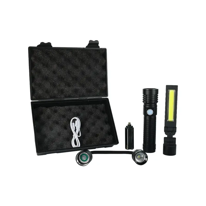 Designed for adaptability, the flashlight transitions between a hand-held torch, work light, and scope light, meeting diverse needs. Its strong magnetic base allows for hands-free use, making it ideal for repairs, camping, or emergency scenarios. A USB-rechargeable design includes a cable and charger for convenient power management. Constructed from durable PC and aluminium, this compact, lightweight flashlight is a reliable companion for both work and leisure.